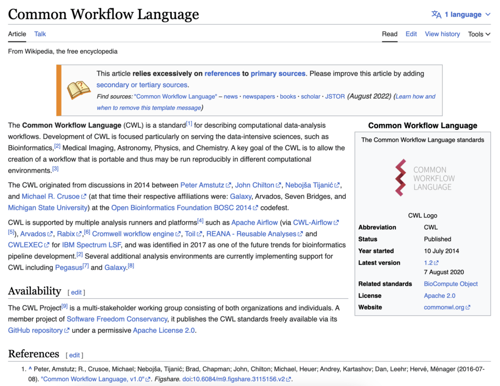 Each has lots of metadata associated with it. Sometimes this description is includeddirectly on the landing page, as is the case with PIVlab – Time-Resolved Digital Particle Image Velocimetry Tool for MATLAB (https://doi.org/10.6084/m9.figshare.1092508). For others, we find context to the work on other sites that link directly to the output, which are picked up by the Altmetric Explorer tool. Whether it be a Wikipedia article describing the software, as is the case for Common Workflow Language, v1.0 ( https://doi.org/10.6084/m9.figshare.3115156.v2) or blog posts that describe the The graph-tool python library (https://doi.org/10.6084/m9.figshare.1164194.v14) or PyMKS: Materials Knowledge System in Python (https://doi.org/10.6084/m9.figshare.1015761.v2)